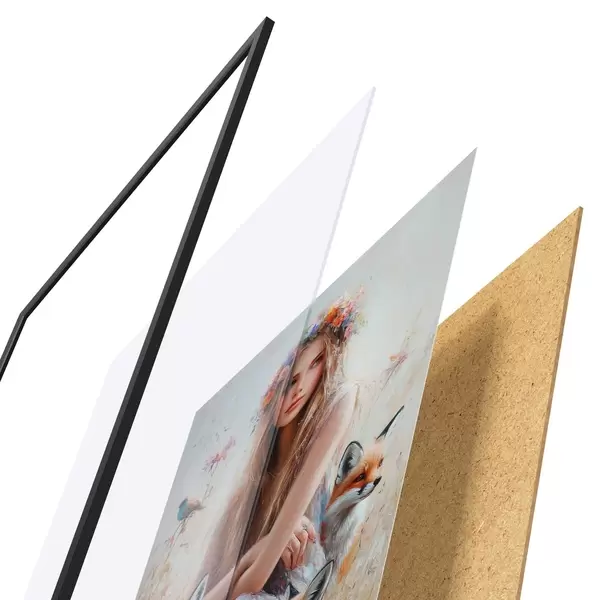 Plakāts sastāv no rāmja, pleksstikla, iespiestā attēla un skaidu plātnes pamatnes. Plakātu var uzreiz piekarināt pie sienas, pateicoties aizmugurē esošajiem stiprinājumiem.