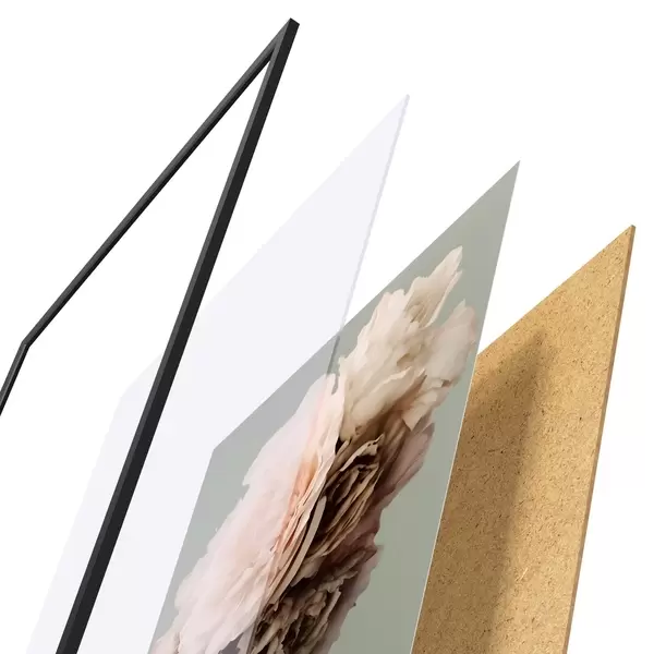 Plakāts sastāv no rāmja, pleksstikla, iespiestā attēla un skaidu plātnes pamatnes. Plakātu var uzreiz piekarināt pie sienas, pateicoties aizmugurē esošajiem stiprinājumiem.