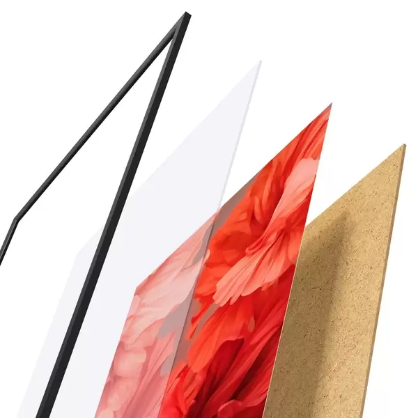 Plakāts sastāv no rāmja, pleksstikla, iespiestā attēla un skaidu plātnes pamatnes. Plakātu var uzreiz piekarināt pie sienas, pateicoties aizmugurē esošajiem stiprinājumiem.