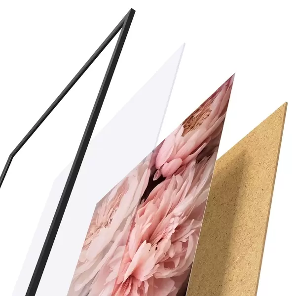 Plakāts sastāv no rāmja, pleksstikla, iespiestā attēla un skaidu plātnes pamatnes. Plakātu var uzreiz piekarināt pie sienas, pateicoties aizmugurē esošajiem stiprinājumiem.