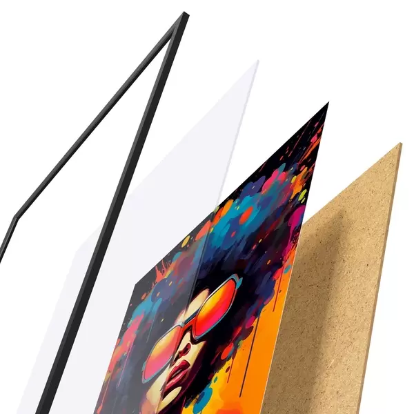 Plakāts sastāv no rāmja, pleksstikla, iespiestā attēla un skaidu plātnes pamatnes. Plakātu var uzreiz piekarināt pie sienas, pateicoties aizmugurē esošajiem stiprinājumiem.
