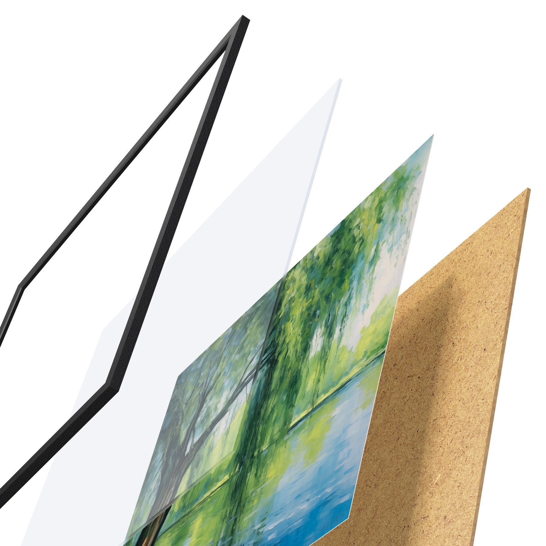 Plakāts sastāv no rāmja, pleksstikla, iespiestā attēla un skaidu plātnes pamatnes. Plakātu var uzreiz piekarināt pie sienas, pateicoties aizmugurē esošajiem stiprinājumiem.