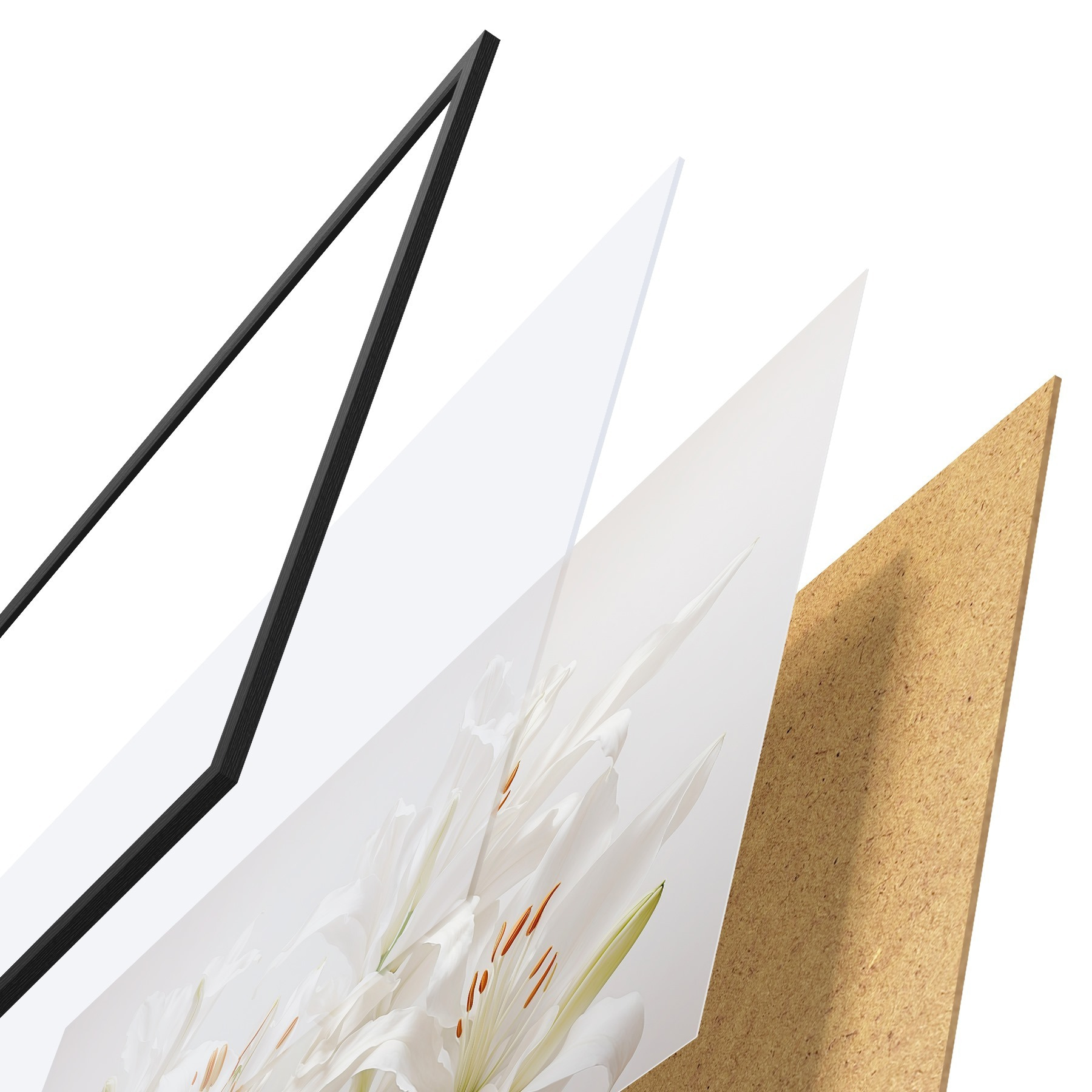 Plakāts sastāv no rāmja, pleksstikla, iespiestā attēla un skaidu plātnes pamatnes. Plakātu var uzreiz piekarināt pie sienas, pateicoties aizmugurē esošajiem stiprinājumiem.