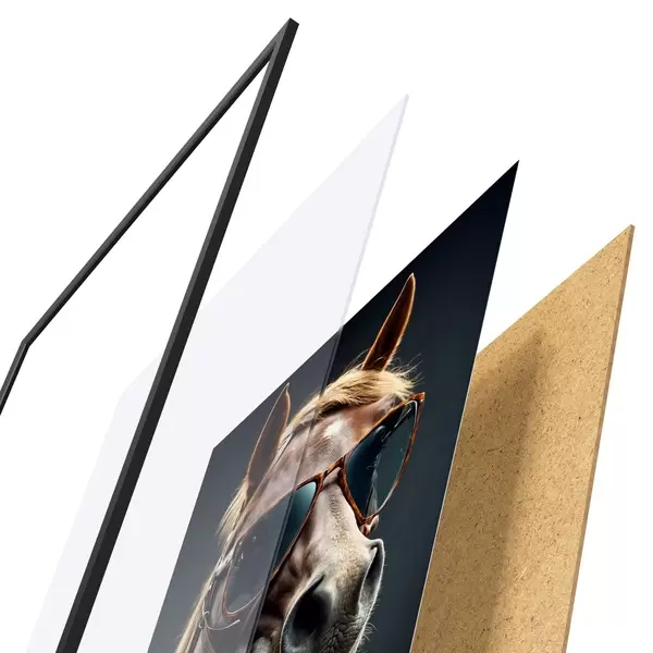 Plakāts sastāv no rāmja, pleksstikla, iespiestā attēla un skaidu plātnes pamatnes. Plakātu var uzreiz piekarināt pie sienas, pateicoties aizmugurē esošajiem stiprinājumiem.
