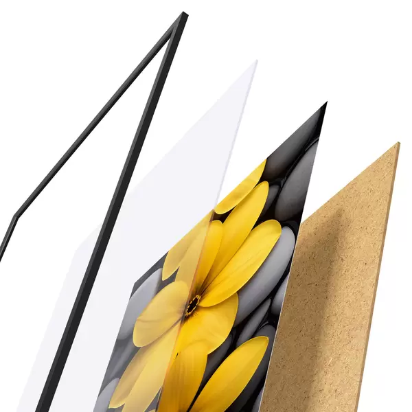 Plakāts sastāv no rāmja, pleksstikla, iespiestā attēla un skaidu plātnes pamatnes. Plakātu var uzreiz piekarināt pie sienas, pateicoties aizmugurē esošajiem stiprinājumiem.
