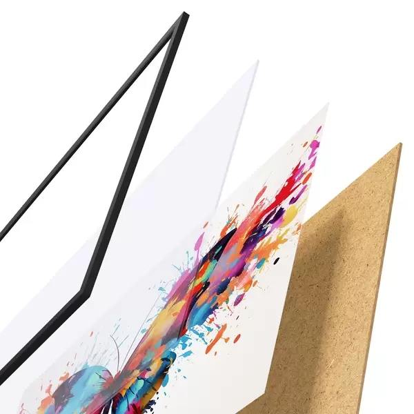 Plakāts sastāv no rāmja, pleksstikla, iespiestā attēla un skaidu plātnes pamatnes. Plakātu var uzreiz piekarināt pie sienas, pateicoties aizmugurē esošajiem stiprinājumiem.