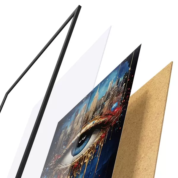Plakāts sastāv no rāmja, pleksstikla, iespiestā attēla un skaidu plātnes pamatnes. Plakātu var uzreiz piekarināt pie sienas, pateicoties aizmugurē esošajiem stiprinājumiem.