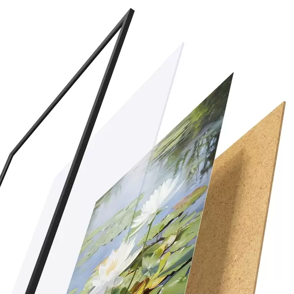 Plakāts sastāv no rāmja, pleksstikla, iespiestā attēla un skaidu plātnes pamatnes. Plakātu var uzreiz piekarināt pie sienas, pateicoties aizmugurē esošajiem stiprinājumiem.