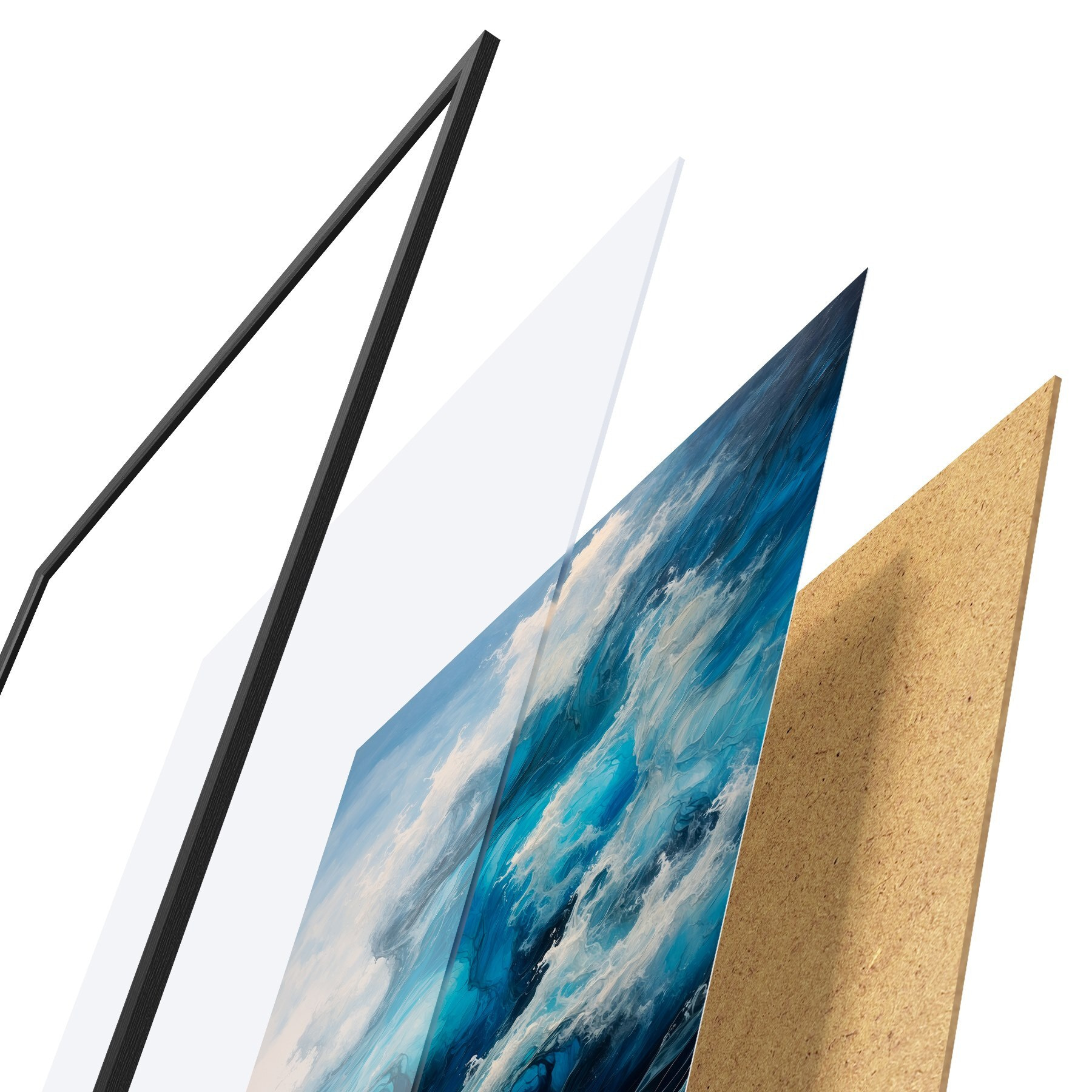 Plakāts sastāv no rāmja, pleksstikla, iespiestā attēla un skaidu plātnes pamatnes. Plakātu var uzreiz piekarināt pie sienas, pateicoties aizmugurē esošajiem stiprinājumiem.