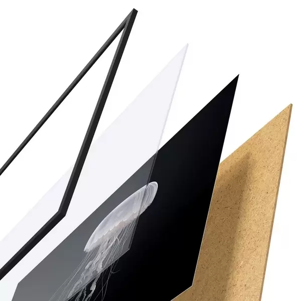 Plakāts sastāv no rāmja, pleksstikla, iespiestā attēla un skaidu plātnes pamatnes. Plakātu var uzreiz piekarināt pie sienas, pateicoties aizmugurē esošajiem stiprinājumiem.