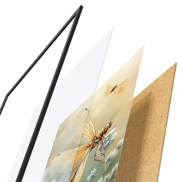 Plakāts sastāv no rāmja, pleksstikla, iespiestā attēla un skaidu plātnes pamatnes. Plakātu var uzreiz piekarināt pie sienas, pateicoties aizmugurē esošajiem stiprinājumiem.