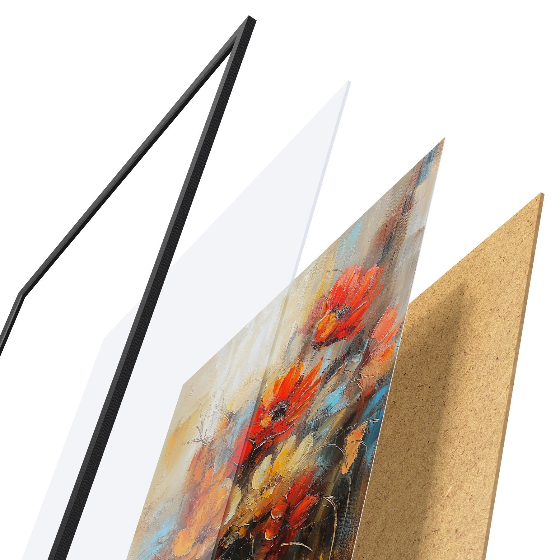 Plakāts sastāv no rāmja, pleksstikla, iespiestā attēla un skaidu plātnes pamatnes. Plakātu var uzreiz piekarināt pie sienas, pateicoties aizmugurē esošajiem stiprinājumiem.