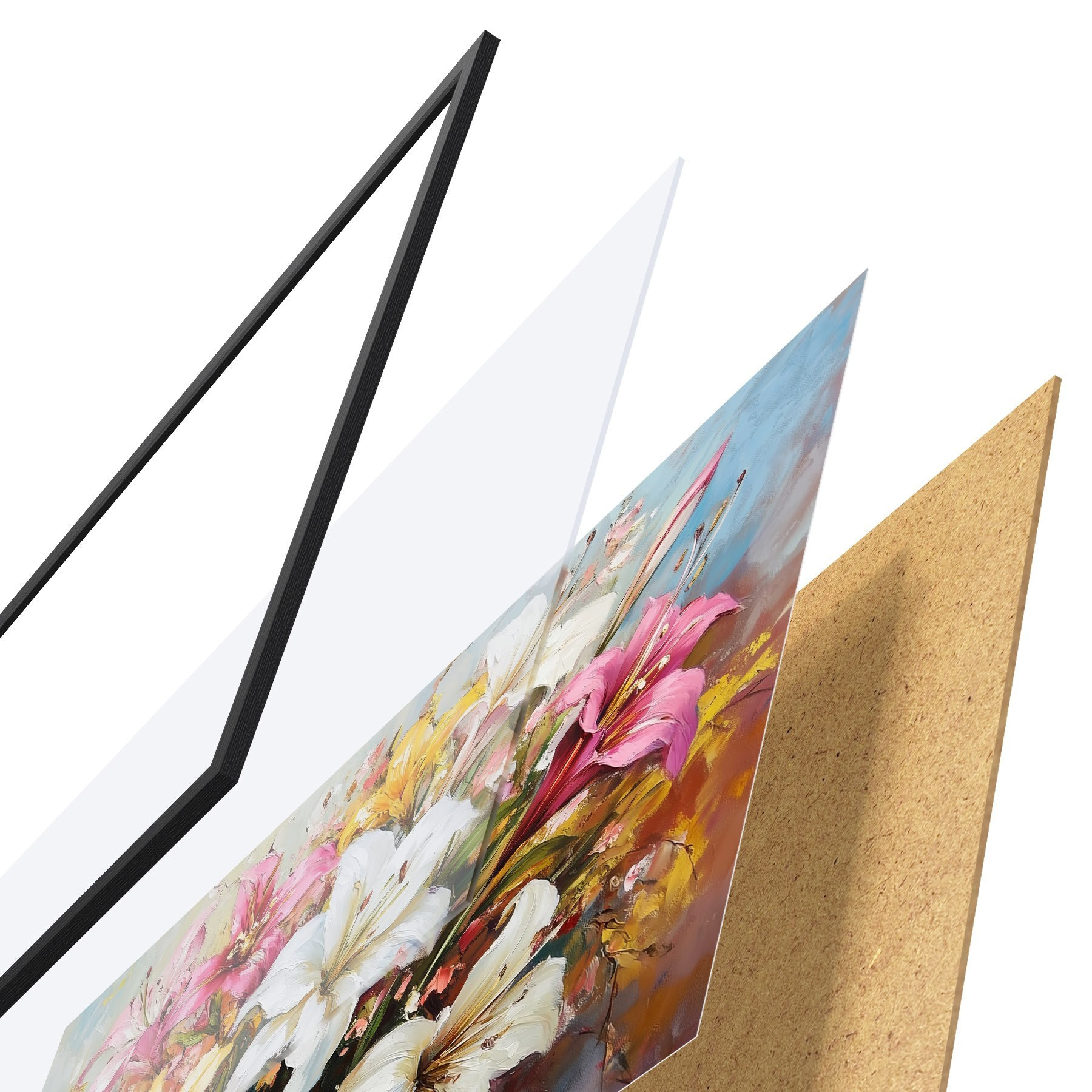 Plakāts sastāv no rāmja, pleksstikla, iespiestā attēla un skaidu plātnes pamatnes. Plakātu var uzreiz piekarināt pie sienas, pateicoties aizmugurē esošajiem stiprinājumiem.