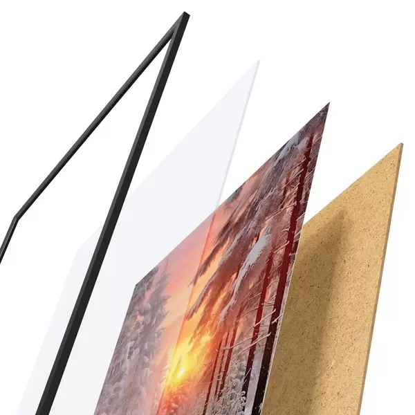 Plakāts sastāv no rāmja, pleksstikla, iespiestā attēla un skaidu plātnes pamatnes. Plakātu var uzreiz piekarināt pie sienas, pateicoties aizmugurē esošajiem stiprinājumiem.