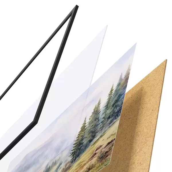 Plakāts sastāv no rāmja, pleksstikla, iespiestā attēla un skaidu plātnes pamatnes. Plakātu var uzreiz piekarināt pie sienas, pateicoties aizmugurē esošajiem stiprinājumiem.