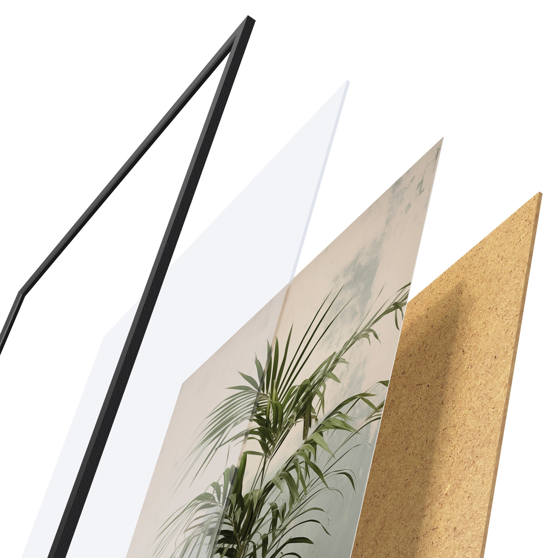 Plakāts sastāv no rāmja, pleksstikla, iespiestā attēla un skaidu plātnes pamatnes. Plakātu var uzreiz piekarināt pie sienas, pateicoties aizmugurē esošajiem stiprinājumiem.