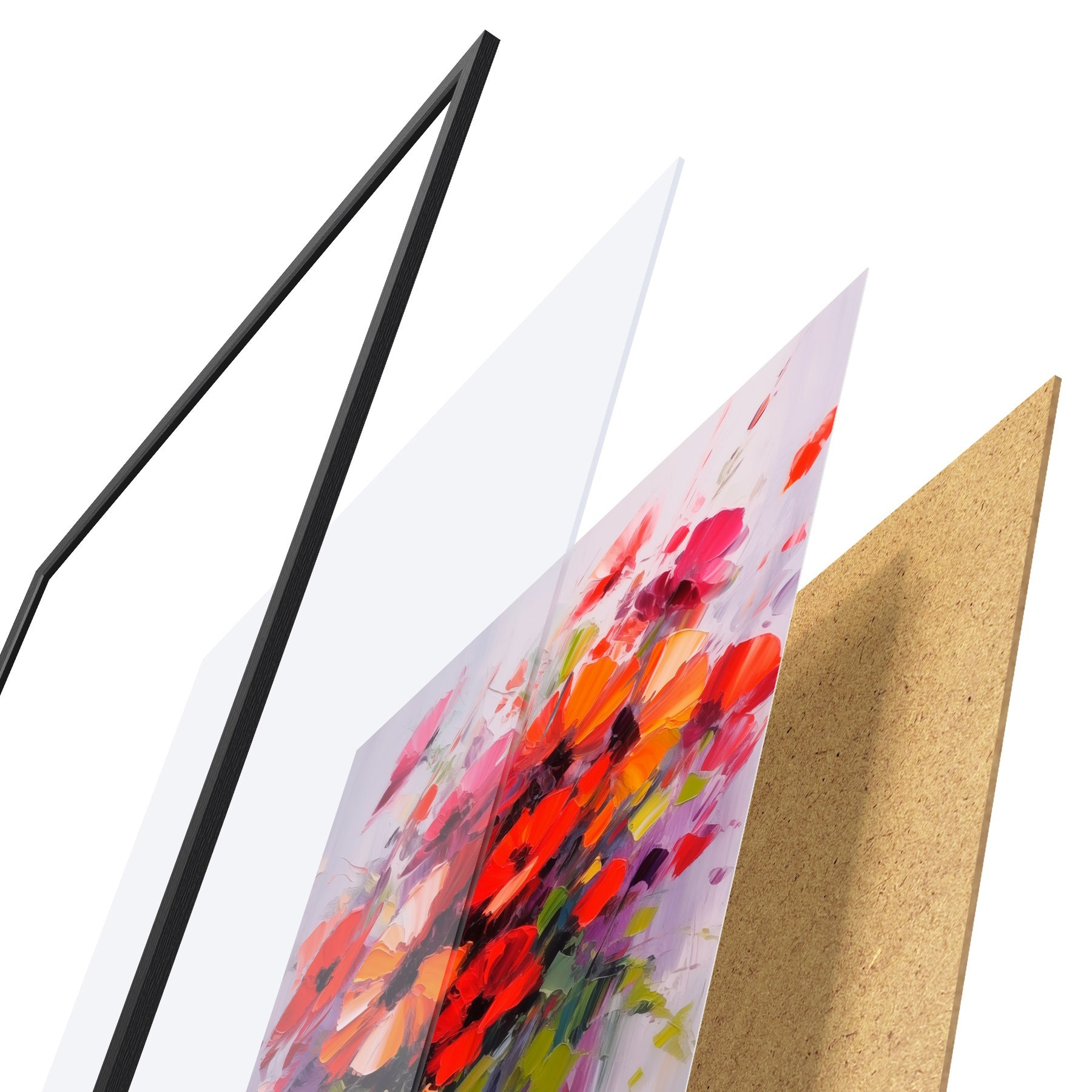 Plakāts sastāv no rāmja, pleksstikla, iespiestā attēla un skaidu plātnes pamatnes. Plakātu var uzreiz piekarināt pie sienas, pateicoties aizmugurē esošajiem stiprinājumiem.