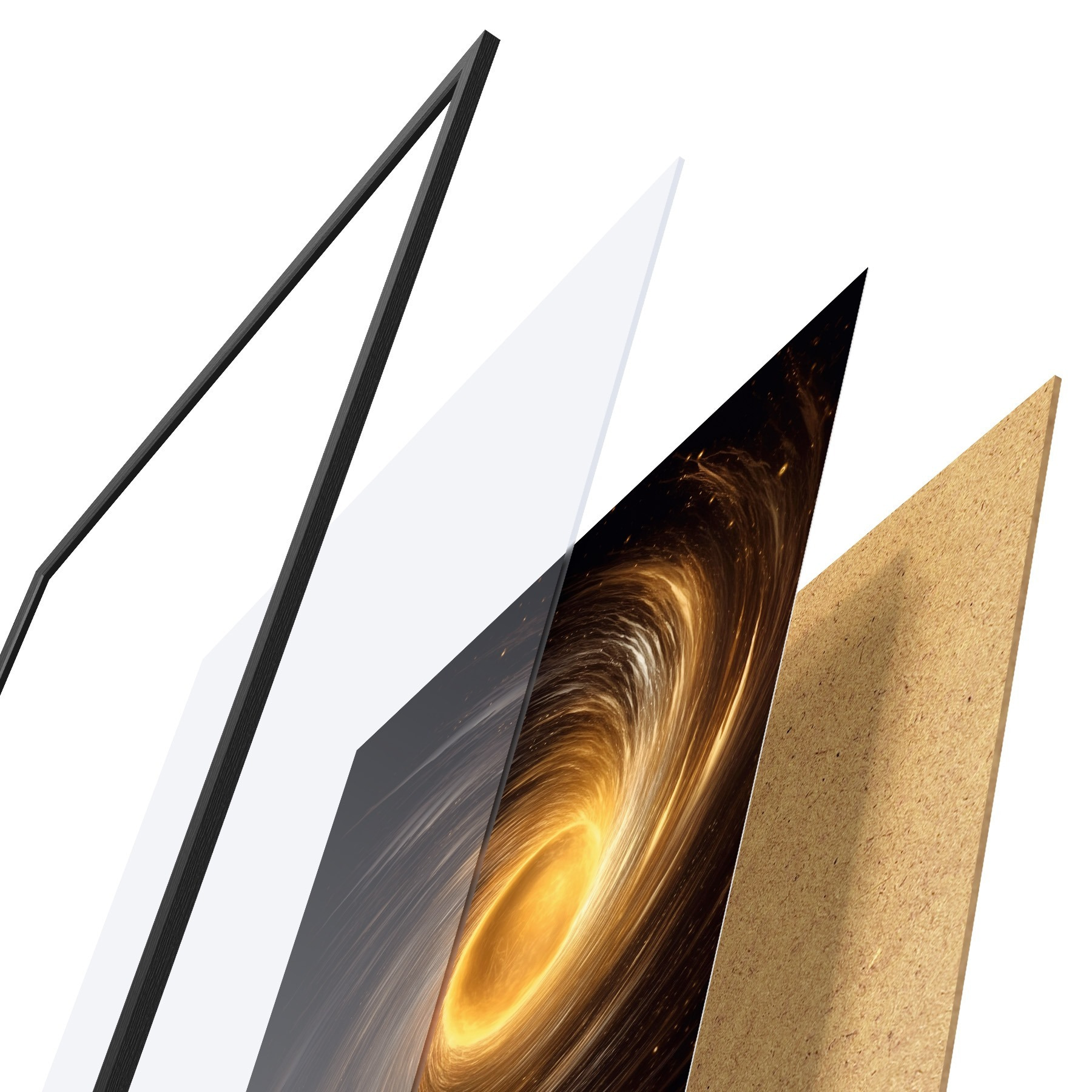 Plakāts sastāv no rāmja, pleksstikla, iespiestā attēla un skaidu plātnes pamatnes. Plakātu var uzreiz piekarināt pie sienas, pateicoties aizmugurē esošajiem stiprinājumiem.