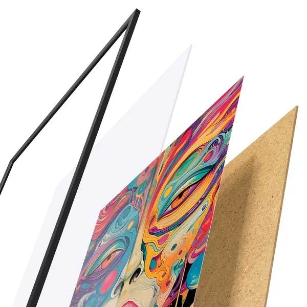 Plakāts sastāv no rāmja, pleksstikla, iespiestā attēla un skaidu plātnes pamatnes. Plakātu var uzreiz piekarināt pie sienas, pateicoties aizmugurē esošajiem stiprinājumiem.