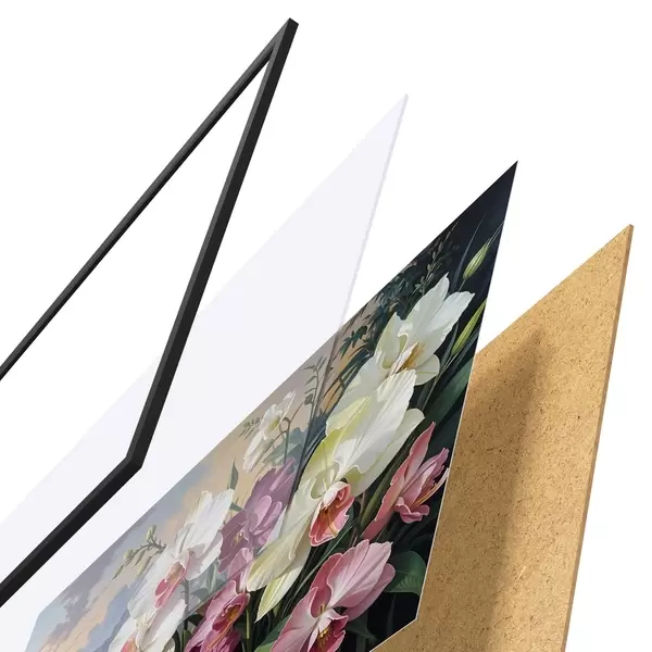 Plakāts sastāv no rāmja, pleksstikla, iespiestā attēla un skaidu plātnes pamatnes. Plakātu var uzreiz piekarināt pie sienas, pateicoties aizmugurē esošajiem stiprinājumiem.