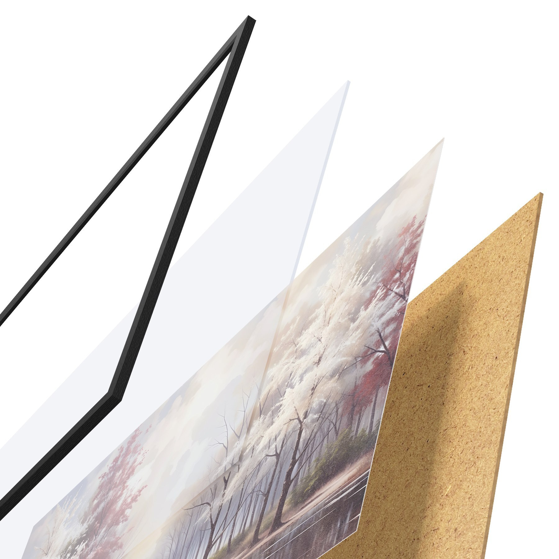 Plakāts sastāv no rāmja, pleksstikla, iespiestā attēla un skaidu plātnes pamatnes. Plakātu var uzreiz piekarināt pie sienas, pateicoties aizmugurē esošajiem stiprinājumiem.