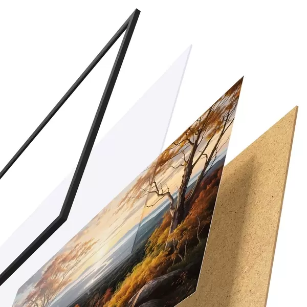 Plakāts sastāv no rāmja, pleksstikla, iespiestā attēla un skaidu plātnes pamatnes. Plakātu var uzreiz piekarināt pie sienas, pateicoties aizmugurē esošajiem stiprinājumiem.