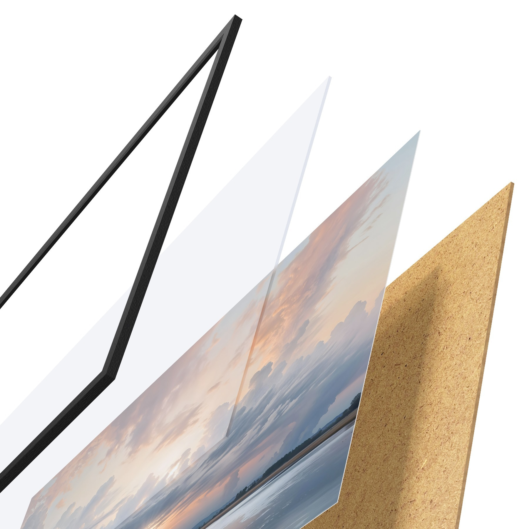 Plakāts sastāv no rāmja, pleksstikla, iespiestā attēla un skaidu plātnes pamatnes. Plakātu var uzreiz piekarināt pie sienas, pateicoties aizmugurē esošajiem stiprinājumiem.