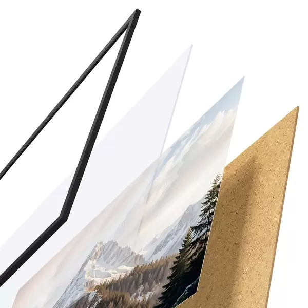 Plakāts sastāv no rāmja, pleksstikla, iespiestā attēla un skaidu plātnes pamatnes. Plakātu var uzreiz piekarināt pie sienas, pateicoties aizmugurē esošajiem stiprinājumiem.