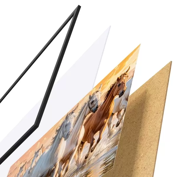Plakāts sastāv no rāmja, pleksstikla, iespiestā attēla un skaidu plātnes pamatnes. Plakātu var uzreiz piekarināt pie sienas, pateicoties aizmugurē esošajiem stiprinājumiem.