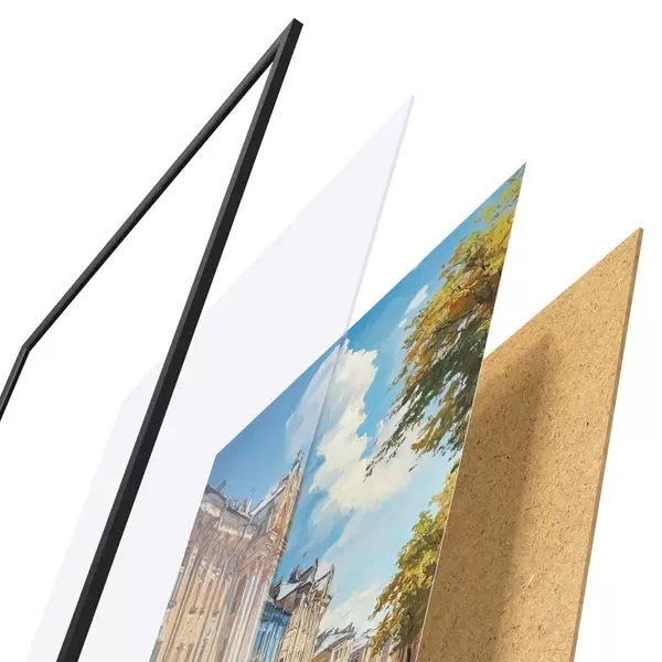 Plakāts sastāv no rāmja, pleksstikla, iespiestā attēla un skaidu plātnes pamatnes. Plakātu var uzreiz piekarināt pie sienas, pateicoties aizmugurē esošajiem stiprinājumiem.