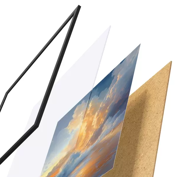 Plakāts sastāv no rāmja, pleksstikla, iespiestā attēla un skaidu plātnes pamatnes. Plakātu var uzreiz piekarināt pie sienas, pateicoties aizmugurē esošajiem stiprinājumiem.