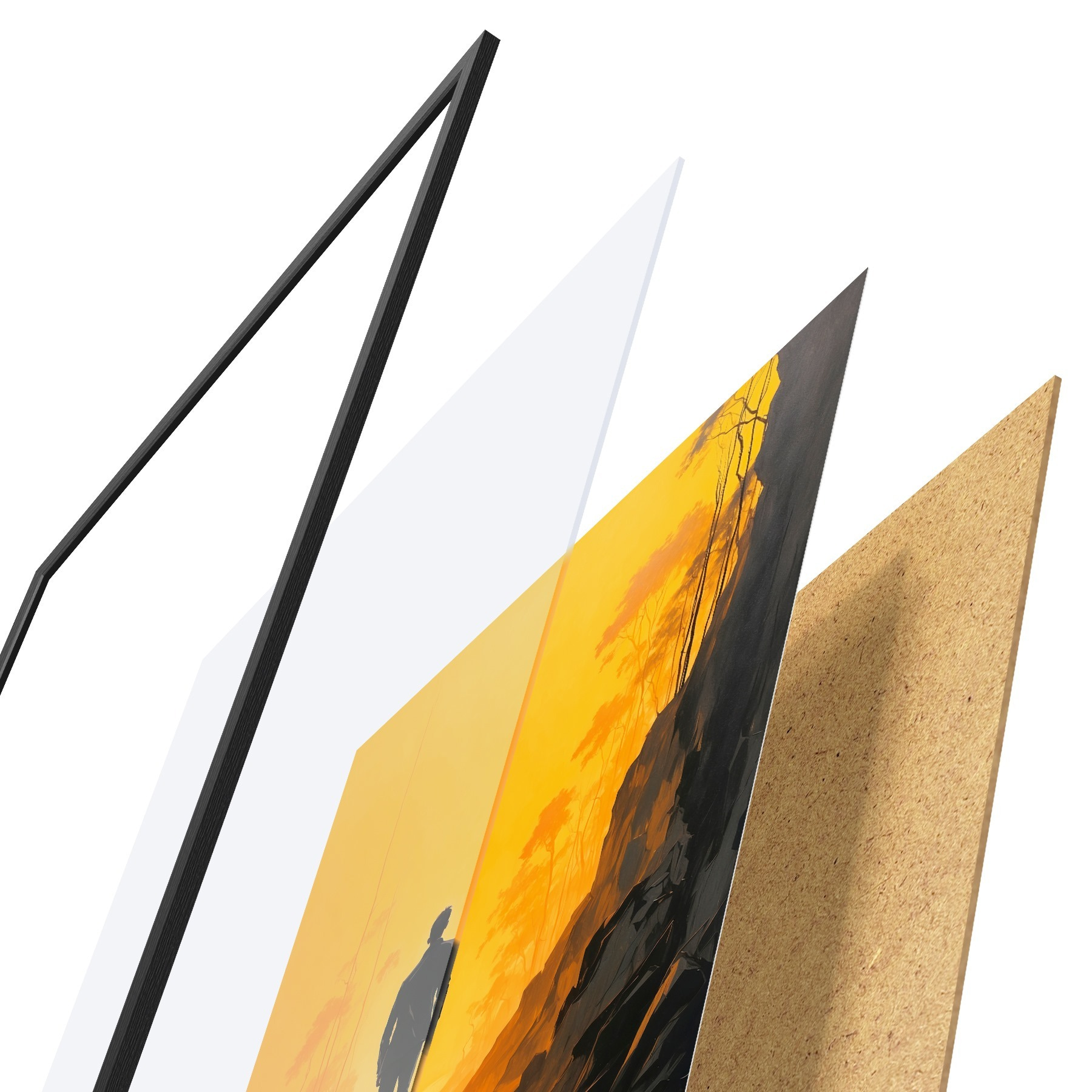Plakāts sastāv no rāmja, pleksstikla, iespiestā attēla un skaidu plātnes pamatnes. Plakātu var uzreiz piekarināt pie sienas, pateicoties aizmugurē esošajiem stiprinājumiem.