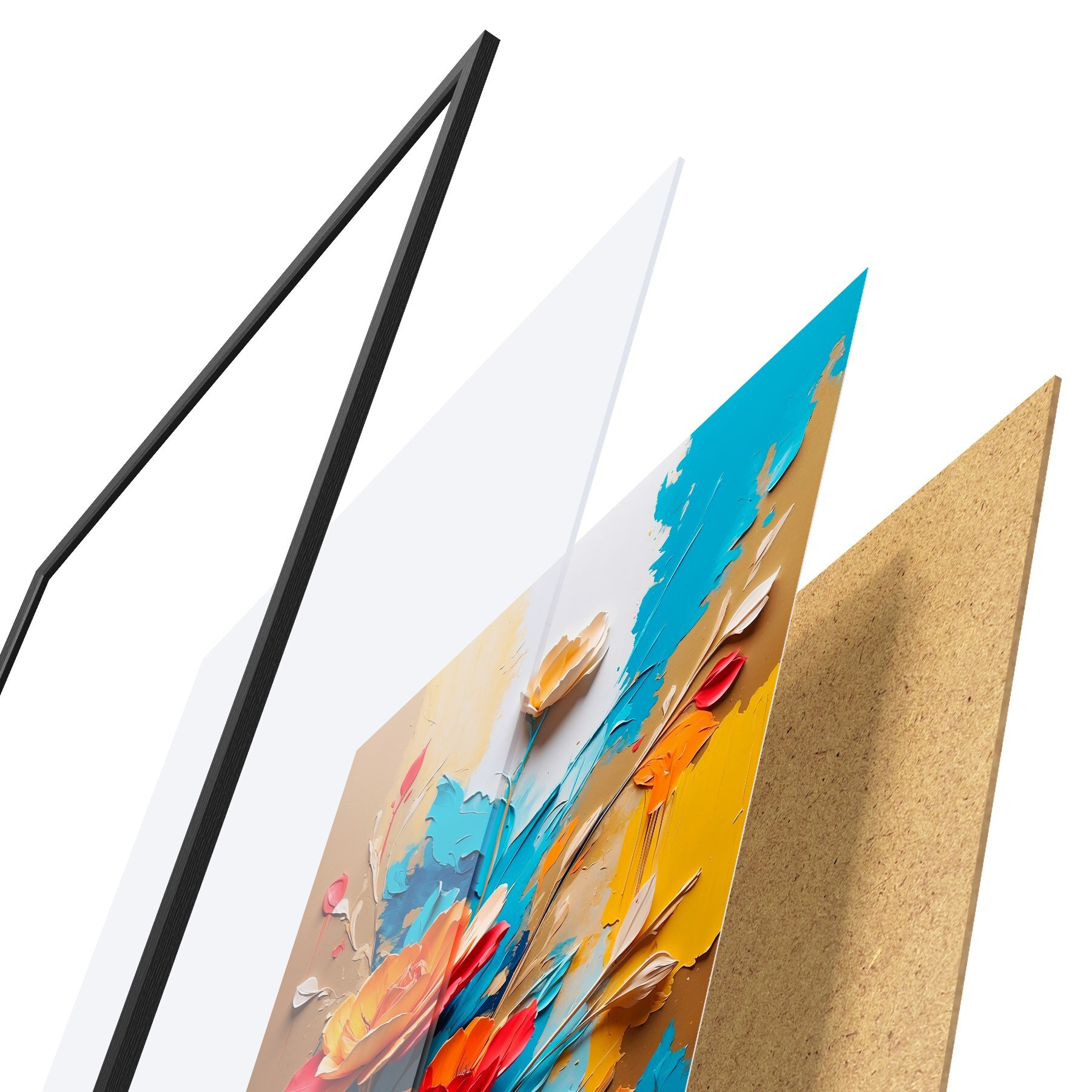 Plakāts sastāv no rāmja, pleksstikla, iespiestā attēla un skaidu plātnes pamatnes. Plakātu var uzreiz piekarināt pie sienas, pateicoties aizmugurē esošajiem stiprinājumiem.