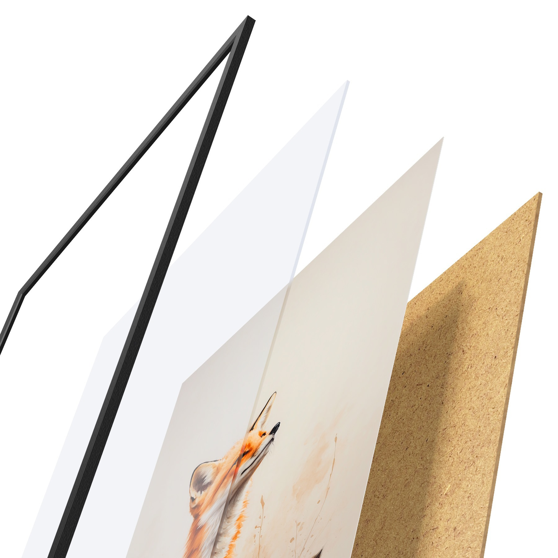 Plakāts sastāv no rāmja, pleksstikla, iespiestā attēla un skaidu plātnes pamatnes. Plakātu var uzreiz piekarināt pie sienas, pateicoties aizmugurē esošajiem stiprinājumiem.