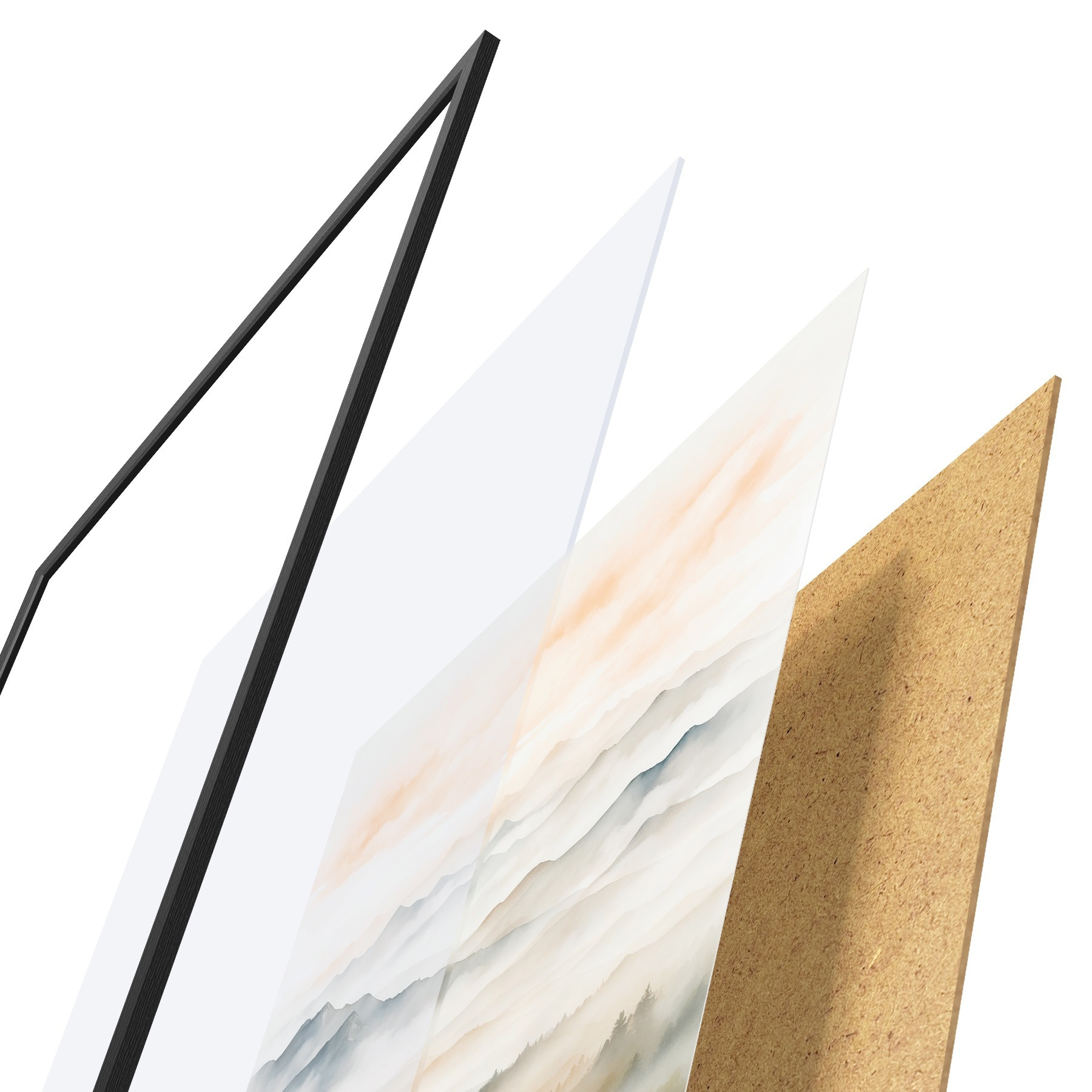 Plakāts sastāv no rāmja, pleksstikla, iespiestā attēla un skaidu plātnes pamatnes. Plakātu var uzreiz piekarināt pie sienas, pateicoties aizmugurē esošajiem stiprinājumiem.