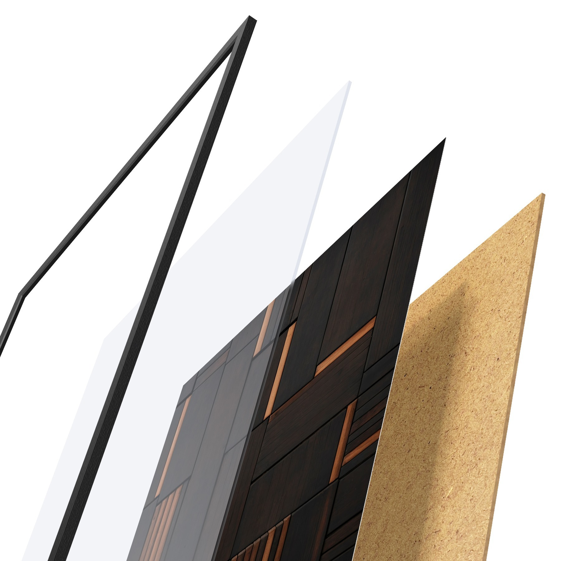 Plakāts sastāv no rāmja, pleksstikla, iespiestā attēla un skaidu plātnes pamatnes. Plakātu var uzreiz piekarināt pie sienas, pateicoties aizmugurē esošajiem stiprinājumiem.