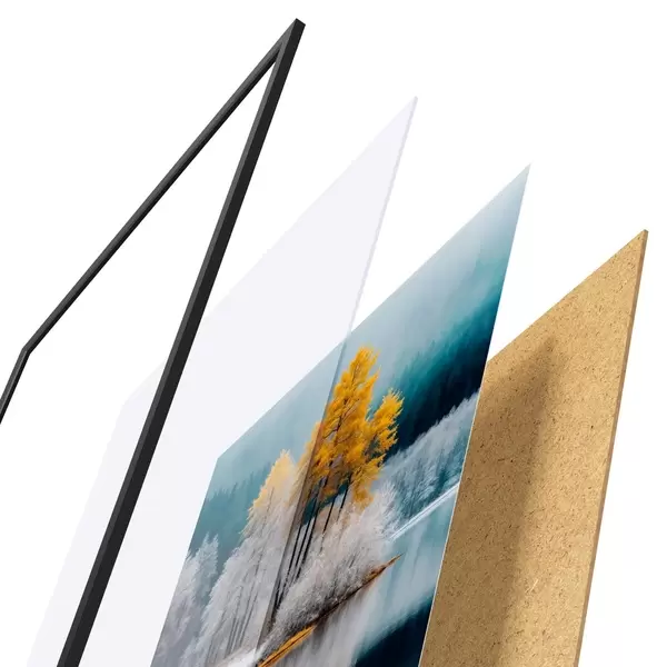 Plakāts sastāv no rāmja, pleksstikla, iespiestā attēla un skaidu plātnes pamatnes. Plakātu var uzreiz piekarināt pie sienas, pateicoties aizmugurē esošajiem stiprinājumiem.