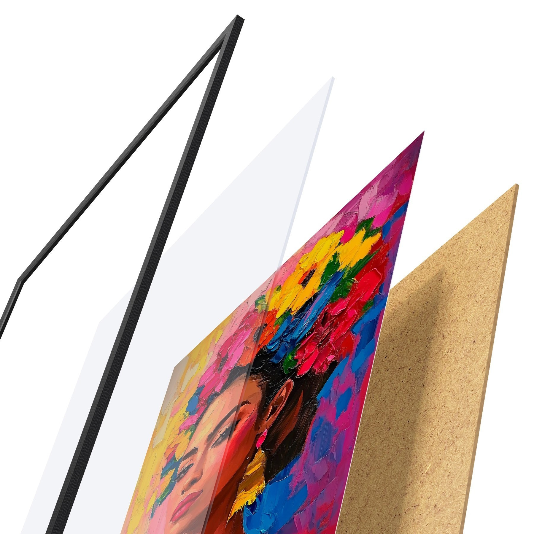 Plakāts sastāv no rāmja, pleksstikla, iespiestā attēla un skaidu plātnes pamatnes. Plakātu var uzreiz piekarināt pie sienas, pateicoties aizmugurē esošajiem stiprinājumiem.