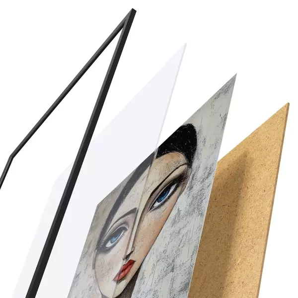 Plakāts sastāv no rāmja, pleksstikla, iespiestā attēla un skaidu plātnes pamatnes. Plakātu var uzreiz piekarināt pie sienas, pateicoties aizmugurē esošajiem stiprinājumiem.