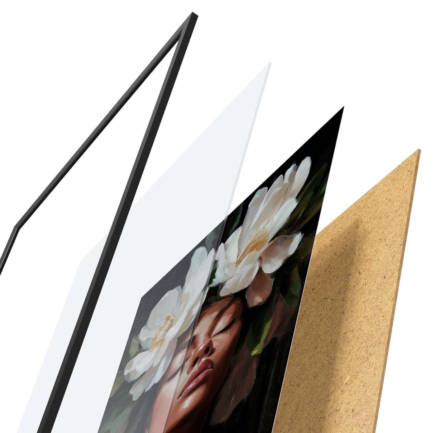 Plakāts sastāv no rāmja, pleksstikla, iespiestā attēla un skaidu plātnes pamatnes. Plakātu var uzreiz piekarināt pie sienas, pateicoties aizmugurē esošajiem stiprinājumiem.