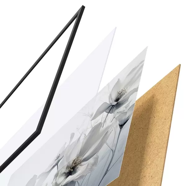 Plakāts sastāv no rāmja, pleksstikla, iespiestā attēla un skaidu plātnes pamatnes. Plakātu var uzreiz piekarināt pie sienas, pateicoties aizmugurē esošajiem stiprinājumiem.