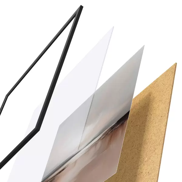 Plakāts sastāv no rāmja, pleksstikla, iespiestā attēla un skaidu plātnes pamatnes. Plakātu var uzreiz piekarināt pie sienas, pateicoties aizmugurē esošajiem stiprinājumiem.