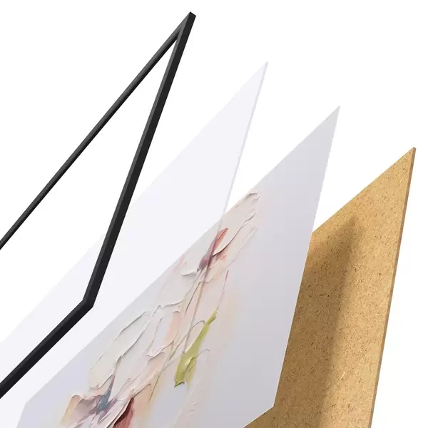 Plakāts sastāv no rāmja, pleksstikla, iespiestā attēla un skaidu plātnes pamatnes. Plakātu var uzreiz piekarināt pie sienas, pateicoties aizmugurē esošajiem stiprinājumiem.