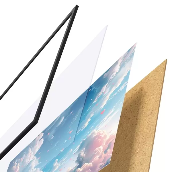 Plakāts sastāv no rāmja, pleksstikla, iespiestā attēla un skaidu plātnes pamatnes. Plakātu var uzreiz piekarināt pie sienas, pateicoties aizmugurē esošajiem stiprinājumiem.