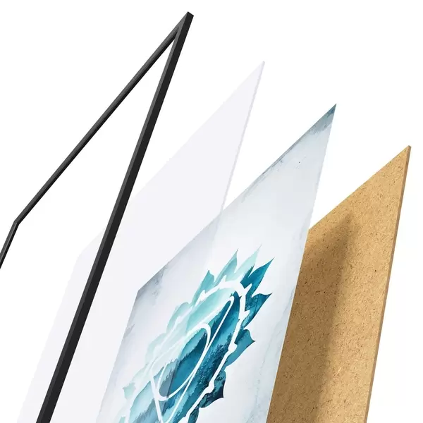 Plakāts sastāv no rāmja, pleksstikla, iespiestā attēla un skaidu plātnes pamatnes. Plakātu var uzreiz piekarināt pie sienas, pateicoties aizmugurē esošajiem stiprinājumiem.