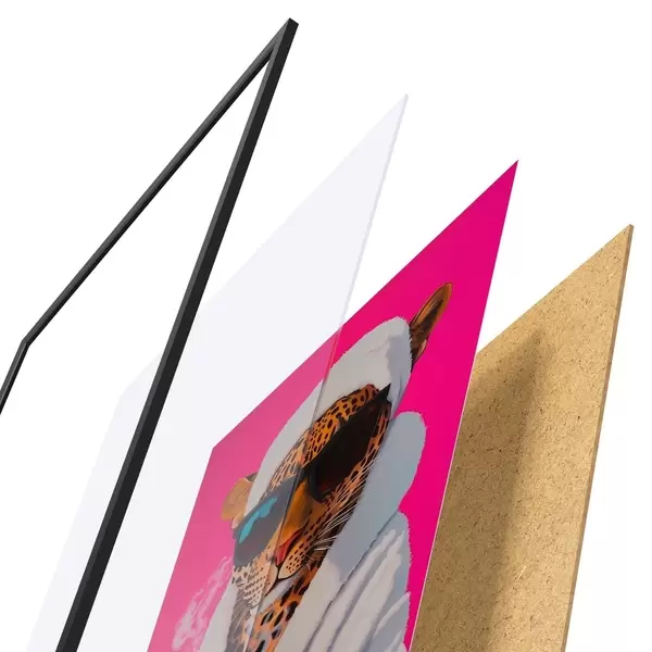 Plakāts sastāv no rāmja, pleksstikla, iespiestā attēla un skaidu plātnes pamatnes. Plakātu var uzreiz piekarināt pie sienas, pateicoties aizmugurē esošajiem stiprinājumiem.