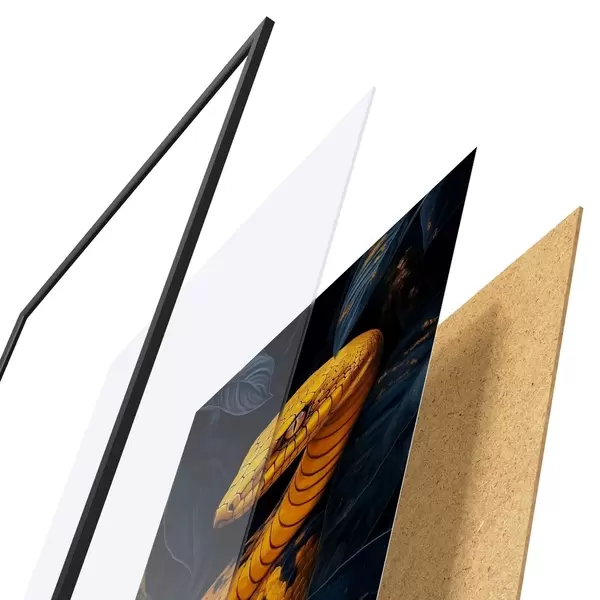 Plakāts sastāv no rāmja, pleksstikla, iespiestā attēla un skaidu plātnes pamatnes. Plakātu var uzreiz piekarināt pie sienas, pateicoties aizmugurē esošajiem stiprinājumiem.