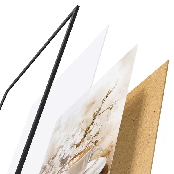 Plakāts sastāv no rāmja, pleksstikla, iespiestā attēla un skaidu plātnes pamatnes. Plakātu var uzreiz piekarināt pie sienas, pateicoties aizmugurē esošajiem stiprinājumiem.