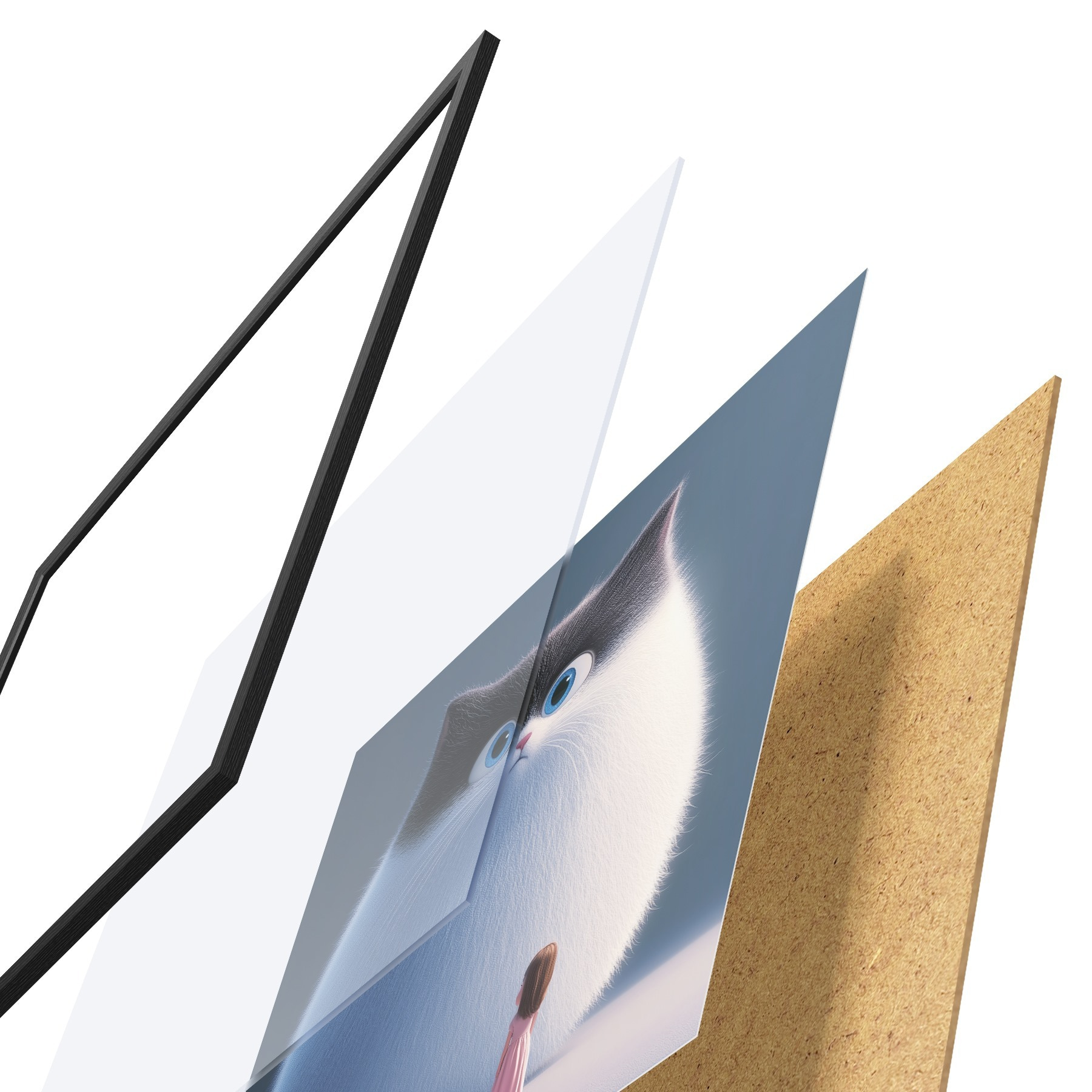 Plakāts sastāv no rāmja, pleksstikla, iespiestā attēla un skaidu plātnes pamatnes. Plakātu var uzreiz piekarināt pie sienas, pateicoties aizmugurē esošajiem stiprinājumiem.