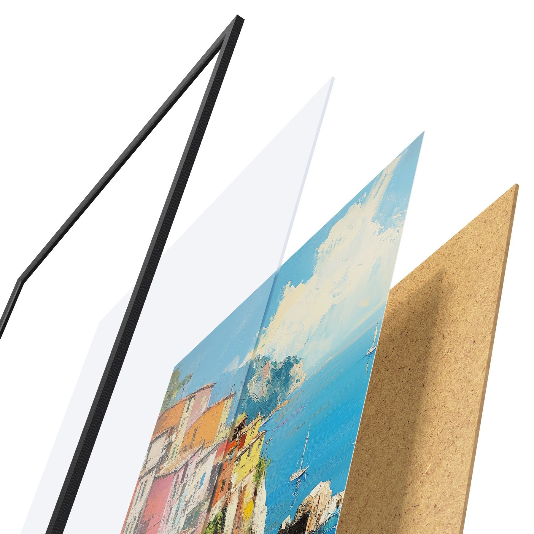 Plakāts sastāv no rāmja, pleksstikla, iespiestā attēla un skaidu plātnes pamatnes. Plakātu var uzreiz piekarināt pie sienas, pateicoties aizmugurē esošajiem stiprinājumiem.